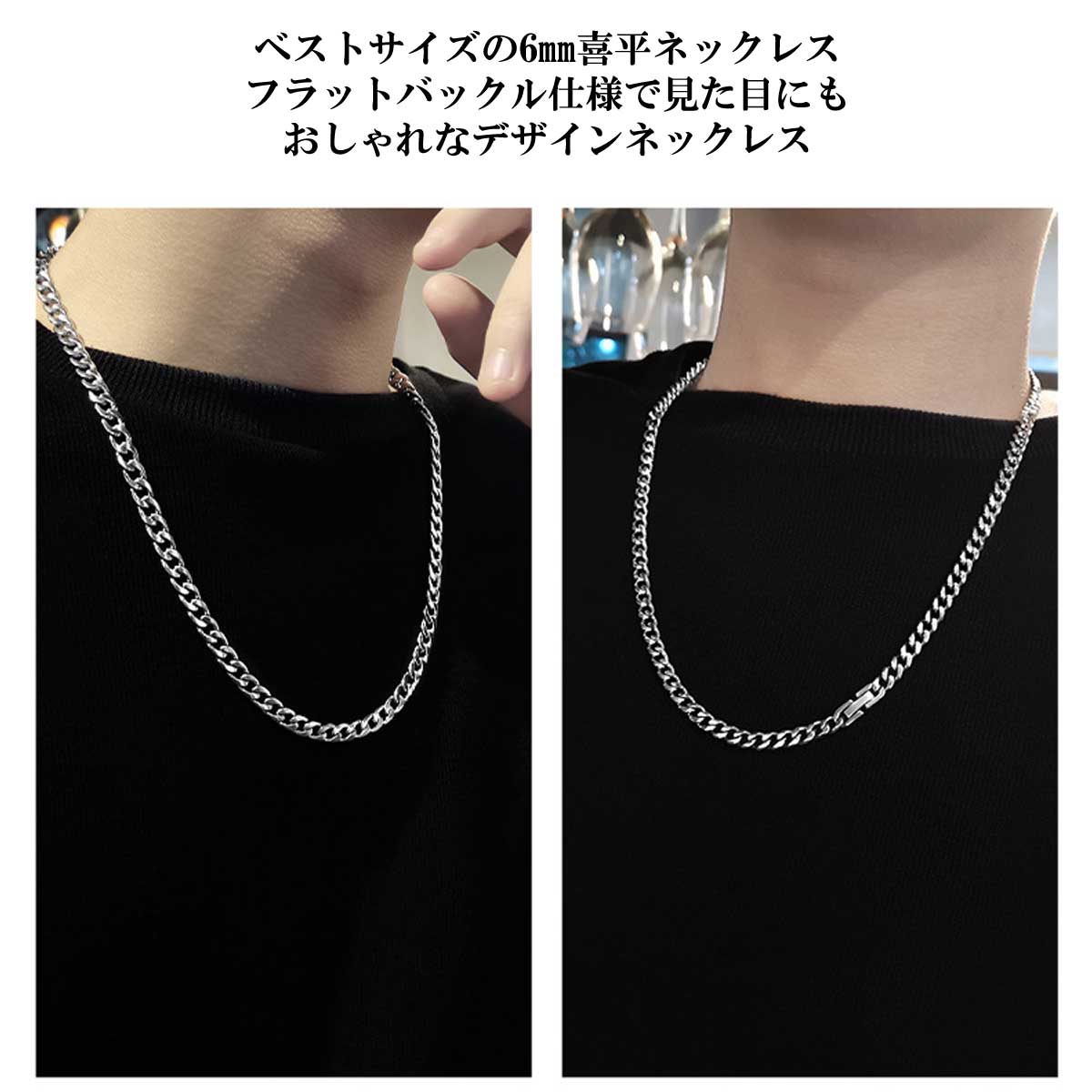 定番の喜平ネックレスはフラットバックルで使いやすく堅牢です。