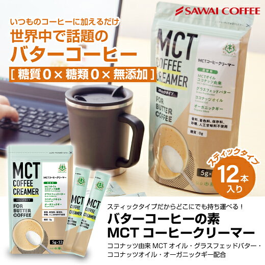 MCTコーヒークリーマー バターコーヒーの素 バターコーヒー グラスフェッドバター 5g 12袋 澤井珈琲 個包装 お試し 糖質ゼロ 中鎖脂肪酸 mct パウダー コーヒー ココナッツオイル 置き換え ダイエット