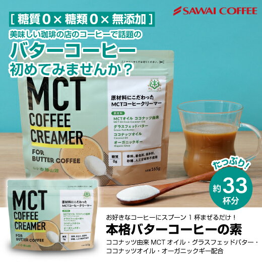 MCTコーヒークリーマー バターコーヒーの素 バターコーヒー グラスフェッドバター 165g 澤井珈琲 糖質ゼロ 糖類ゼロ 中鎖脂肪酸 mct パウダー 粉末 粉 コーヒー ココナッツオイル 置き換え ダイエット