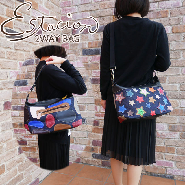【あす楽】エスタシオン Estacion ショルダーバッグ ハンドバッグ レディース 8879 2way 本革 斜めがけ バッグ カジュアル 旅行 星 パッチワーク カラフル エスニック カバン 鞄 【送料無料】 /- /-