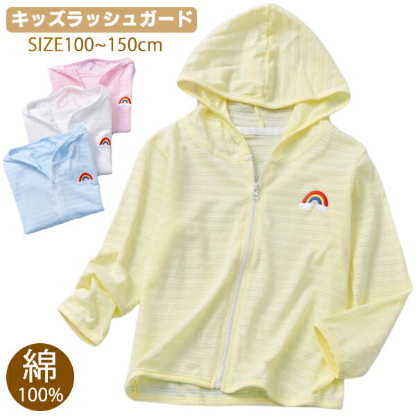 【コットン100%】キッズ 子供 ラッシュガード コットン 綿 100% 女の子 男の子 子供服 韓国 パーカー コート ジャケット 薄い 虹柄 長袖 横縞 春 夏 UVカット お洒落 男の子 可愛い フード付け 日焼け防止 冷気対策 100 110 120 130 140 150cm