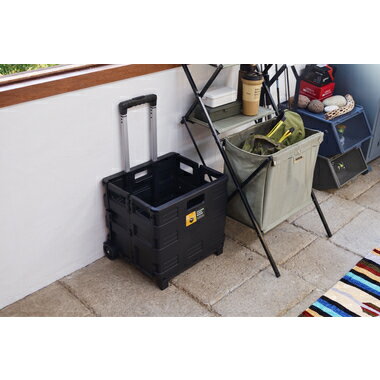 フォールディングキャリーワゴン 幅41 奥行33.5 高さ86(※ボックスまで高さ36) 折りたたみ時:幅41 奥行9 高さ42 cm ブラック 完成品 耐荷重 25kg 商品重量 2kg 送料無料 梱包重量 14kg 種類: LIGHT FURNITURE キャリーワゴン キャリーケース アウトドア