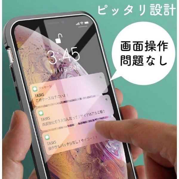●サイドは軽い航空機用アルミニウム合金、前後は強度を誇る強化ガラスの材質でiphone本体を衝撃から守ります。