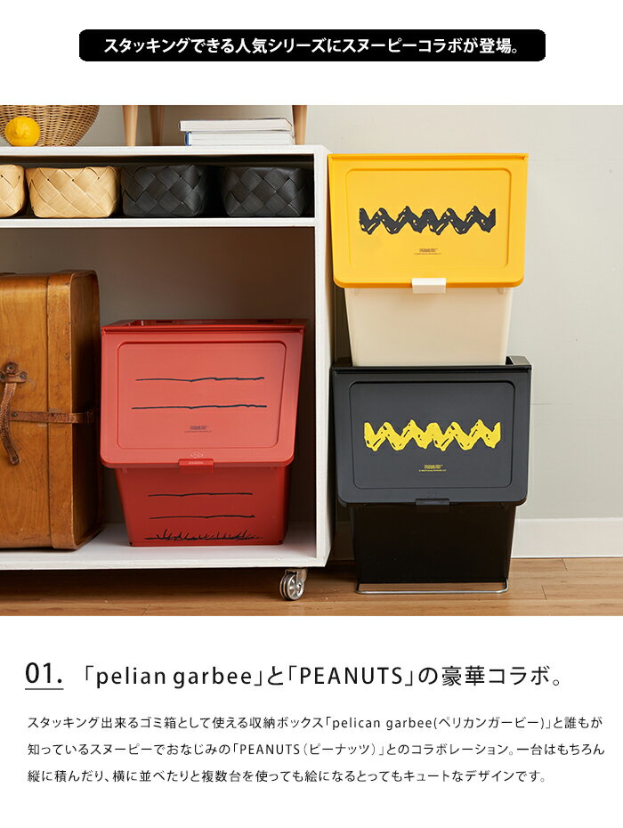 商品スペック 特長 スタッキング出来るゴミ箱として使える収納ボックス「pelican garbee(ペリカンガービー)」と誰もが知っているスヌーピーでおなじみの「PEANUTS(ピーナッツ)」とのコラボレーション。