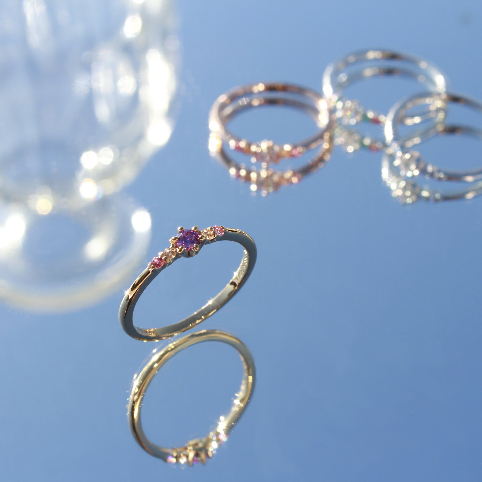 ラプンツェルの美しいブロンドヘアを表すイエローゴールドカラーやキュートなドレスをイメージしたカラーストーンが手元をキュートに印象づけます。