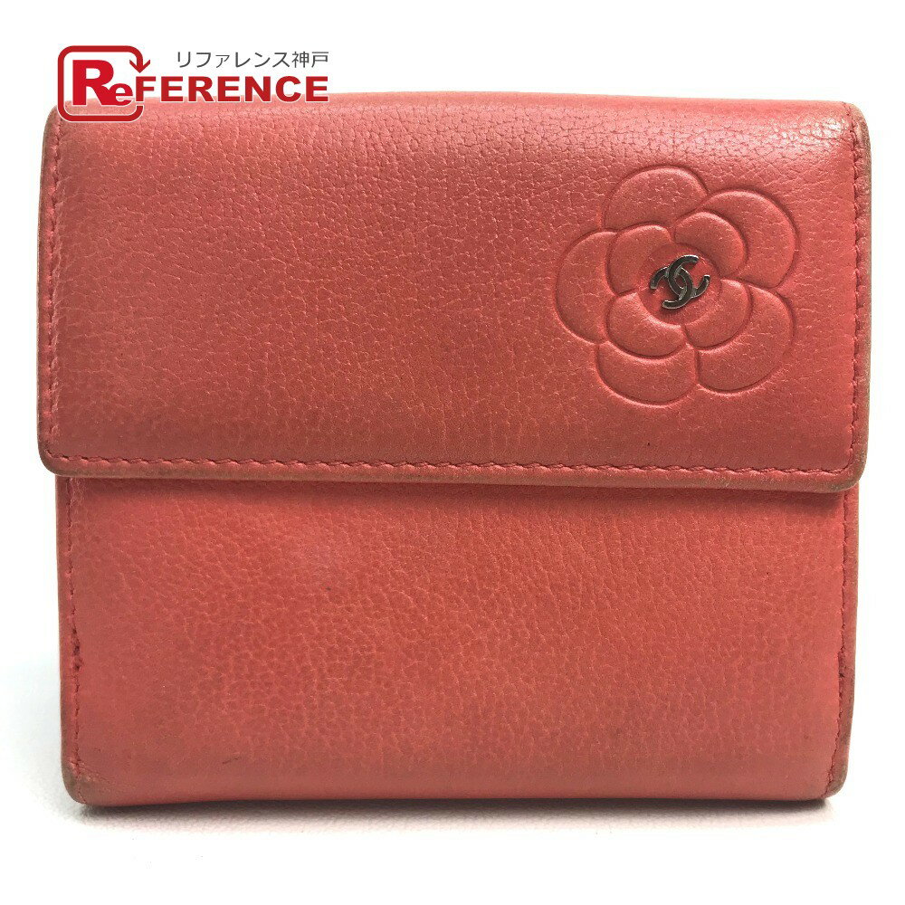 CHANEL シャネル A46507 CC ココマーク カメリア Wホック 2つ折り財布 レザー レディース コーラルオレンジ 【中古】