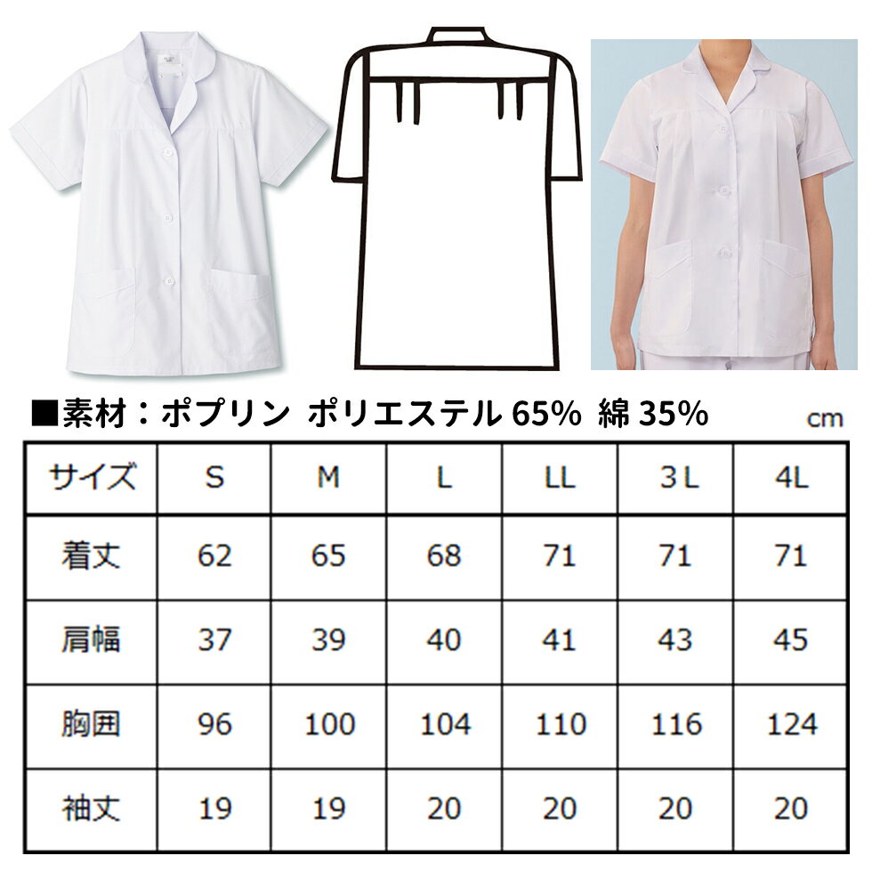 サカノ繊維 白衣女性用 SKA 732 女子横掛半袖白衣 S-3L